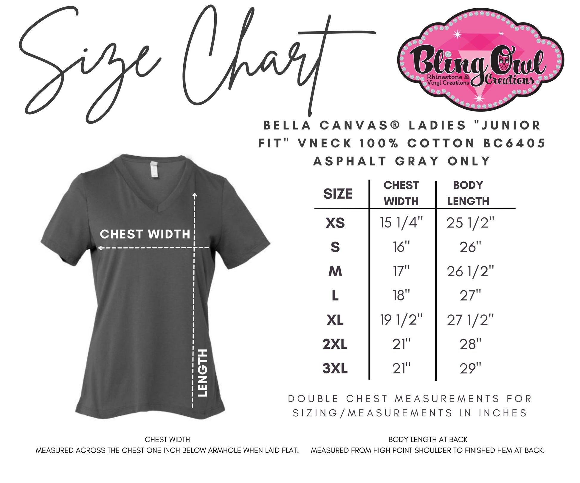 Bella Canvas Women's Fitted Vneck Short Sleeve Sizing Charts (No product/not for sale)