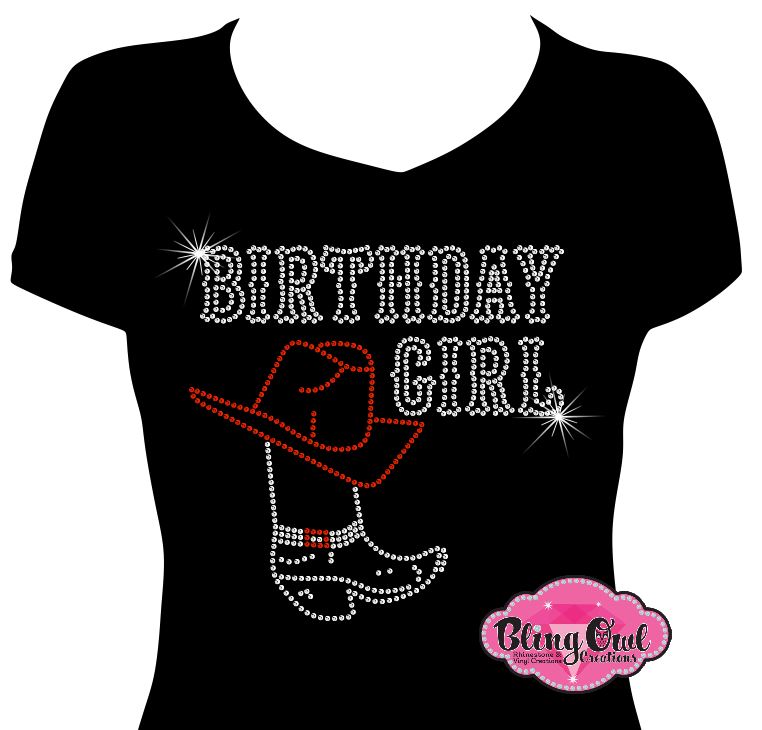 Kick up your heels with our Birthday Girl Cowboy Boot and Hat Rhinestone Shirt.