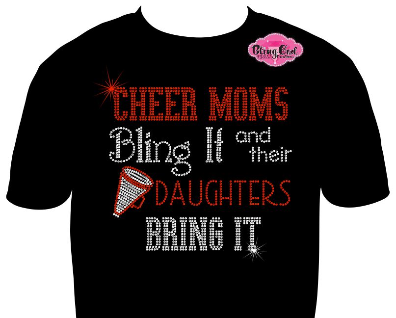 Show your spirit with our Cheer Moms Bling It Rhinestone Tee. This stylish Rhinestone Tee is sure to make a statement, featuring a signature sparkle and bling design that celebrates Cheer Moms and their daughters. Show your cheer team you care and Bling It!