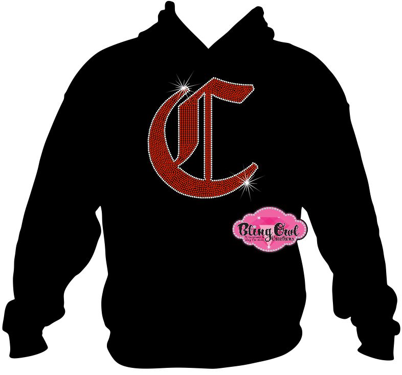 Handcrafted with top-quality glass rhinestones, this bold red "C" design sparkles brilliantly against a classic black sweatshirt. Perfect for chilly game nights, school events, or everyday wear, this unisex fit ensures comfort and style for everyone.