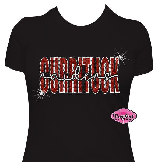 Sparkle with school spirit in our Currituck Raiders Knockout Rhinestone Tee! This women’s fitted tee features bold CURRITUCK knockout lettering filled with radiant red rhinestones, while the word Raiders shines across the center in dazzling clear rhinestones. Perfect for game days, school events, or simply showing your Raider pride with a touch of glam.