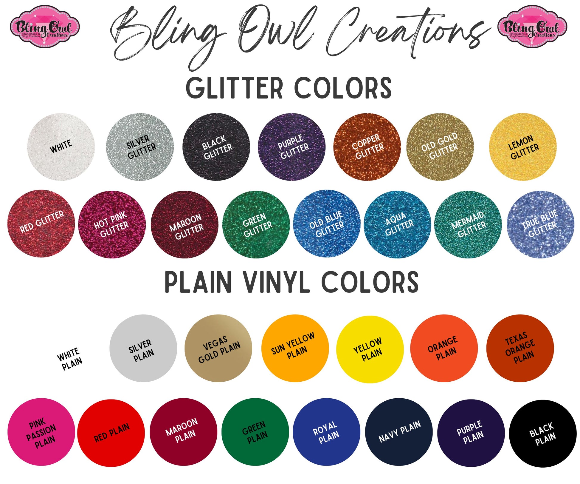 Created in Glitter Vinyl or Plain Vinyl