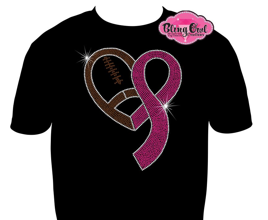 This Football Cancer Ribbon is designed to show support for those affected by cancer. Show your unity with the football ribbon and bling style. Perfect for football season, this shirt is sure to turn heads with its sparkly stones. This sparkly rhinestone design makes this shirt one of a kind.