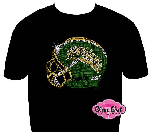 Show off your Wildcats pride with this bold and sparkling Next Level unisex short sleeve tee! Featuring a detailed rhinestone helmet design in green, gold, and crystal stones, this shirt is perfect for game days, school spirit events, or everyday wear. Made on a soft, premium Next Level Canvas tee, it combines comfort with standout style. The unisex fit makes it a great option for both men and women. Add some Bling Owl sparkle to your Wildcats gear and cheer your team on in true fashion!