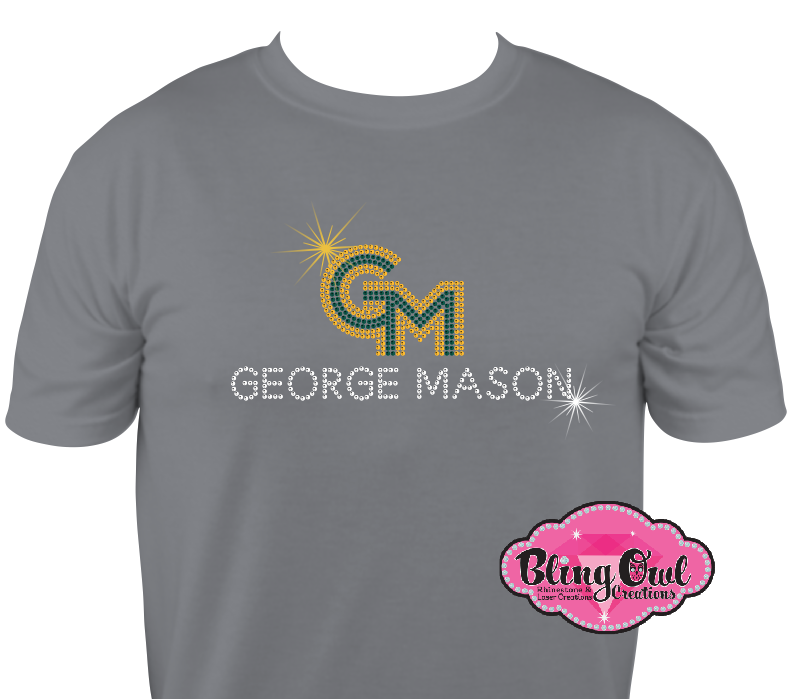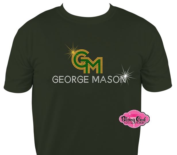 Show off your Patriot pride with this officially licensed George Mason University bling shirt! Featuring a dazzling script "Patriots" design in vibrant green, gold, and crystal-clear top-quality glass rhinestones, this unisex short sleeve tee is a sparkling standout for any George Mason fan. Whether you're heading to a game, repping your alma mater, or looking for a standout spirit piece, this shirt delivers on style and comfort.