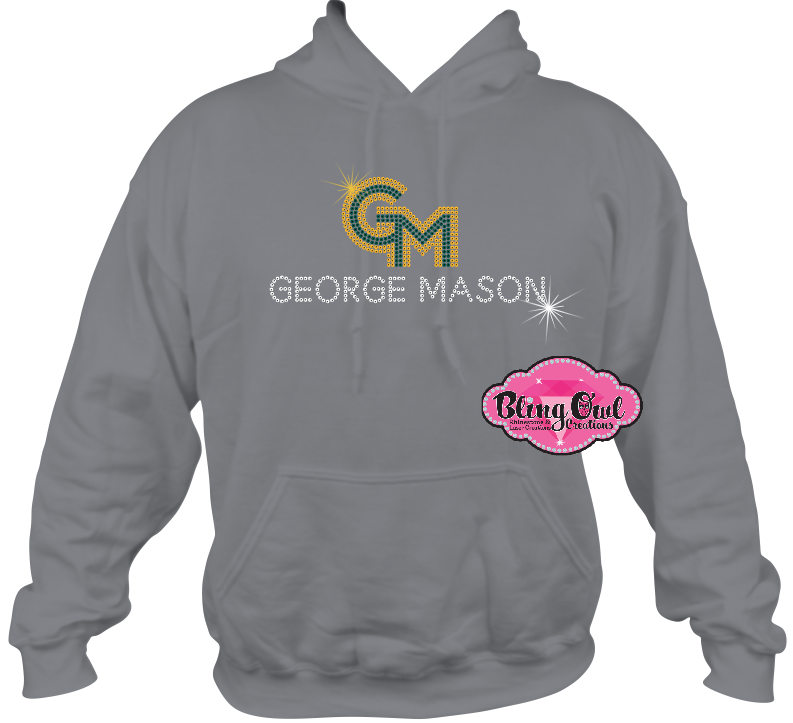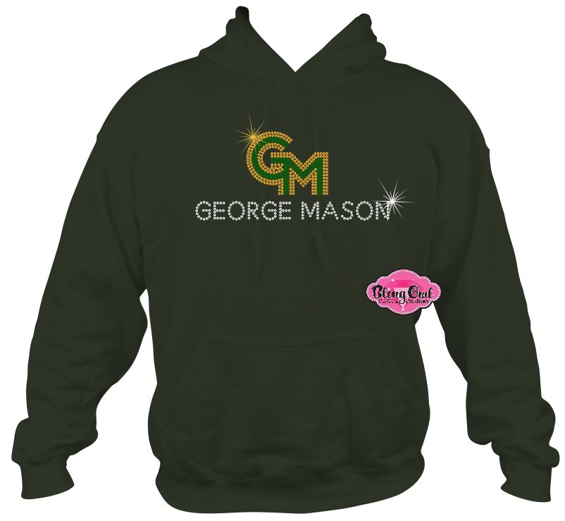 Show off your Patriot pride with sparkle! This officially licensed George Mason University bling sweatshirt features a bold "George Mason" logo and full "George Mason" name in dazzling top-quality glass rhinestones. Whether you're tailgating, heading to class, or cheering courtside, this cozy hoodie brings the perfect blend of school spirit and standout shine.