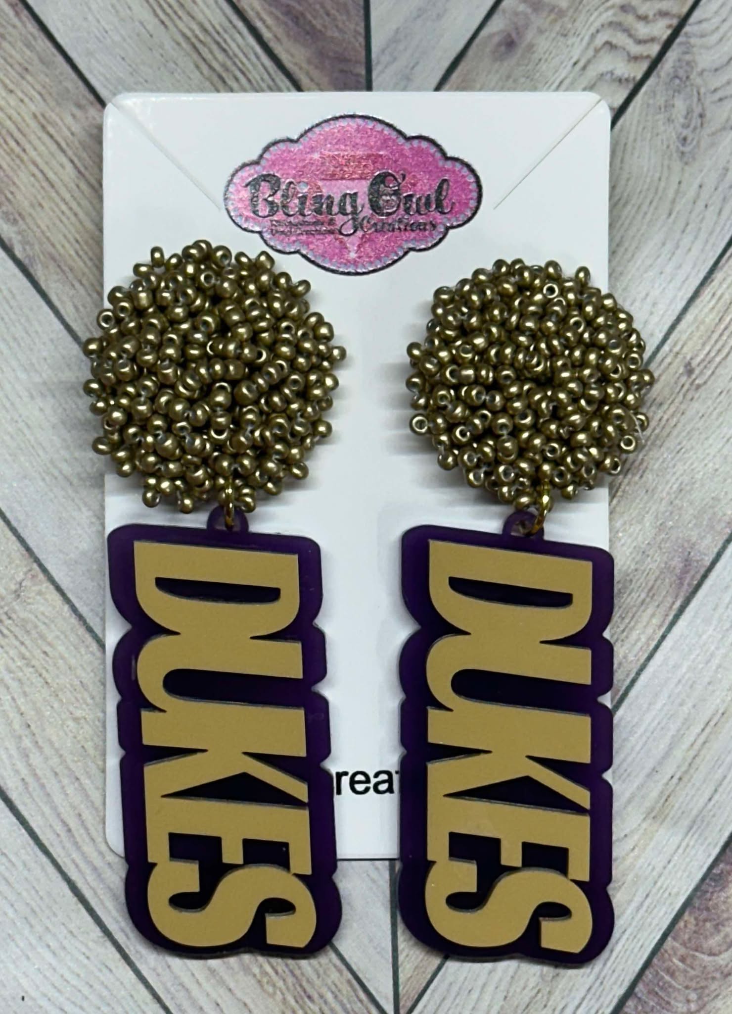 Do you love to show your Team Spirit? If so, you will love our new JMU Dukes Earrings. These Sead Beed Topper Earrings make a Bold Team Statement.