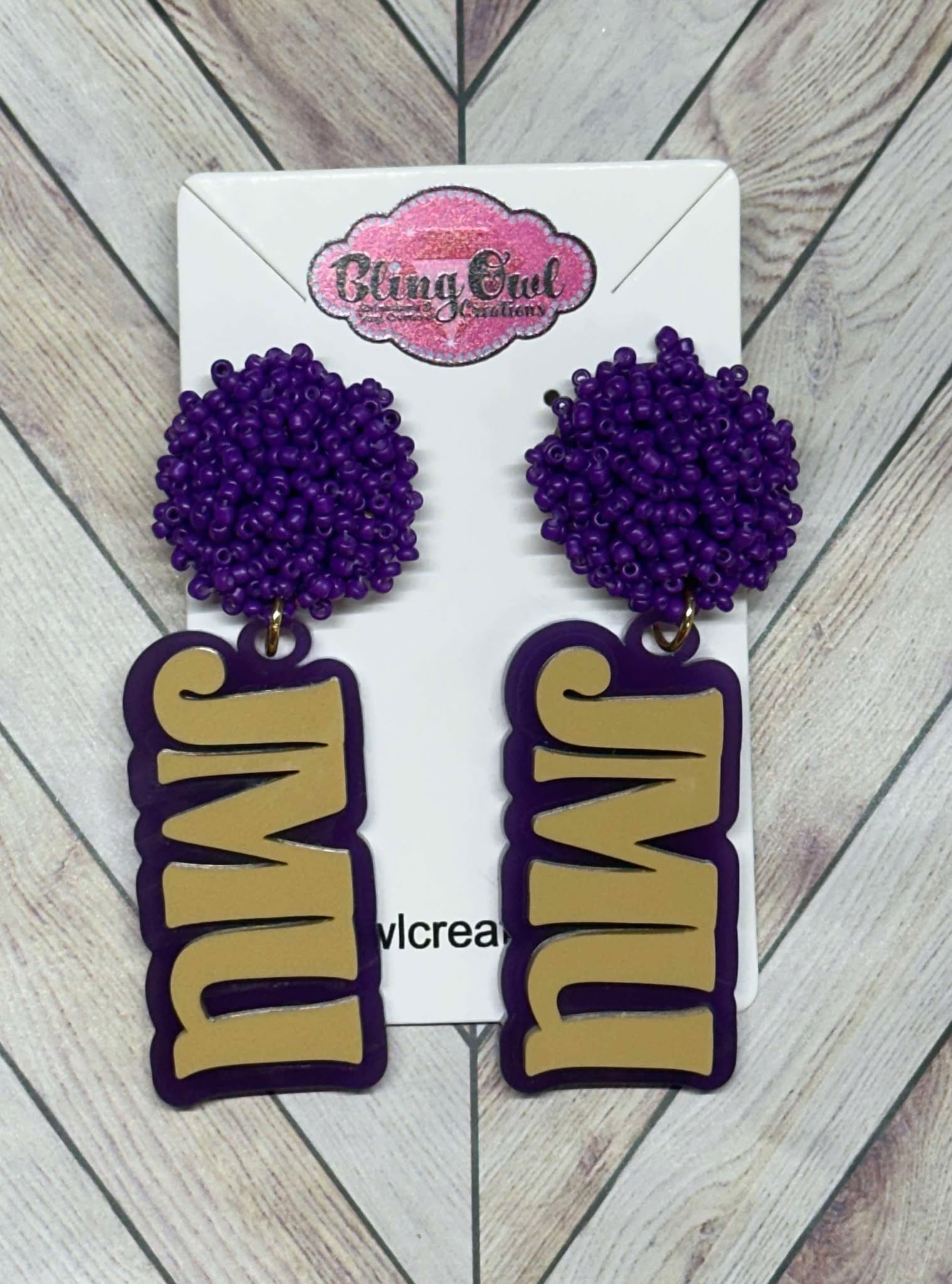 Do you love to show your Team Spirit? If so, you will love our new JMU Earrings. These Sead Beed Topper Earrings make a Bold Team Statement.