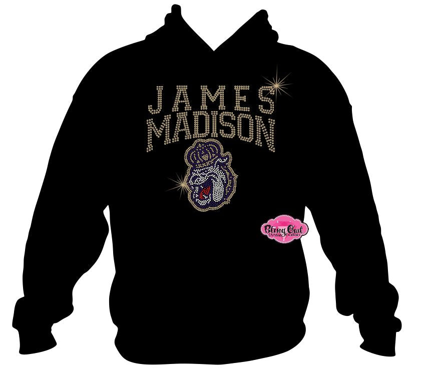 “JAMES MADISON” lettering in radiant crystal rhinestones