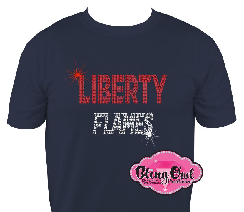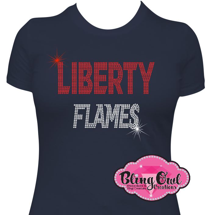 Introducing the Liberty University Flames Logo, an official licensed rhinestone apparel from Bling Owl Creations. Stand out as a true fan, alumni or student of Liberty University with this high-quality bling sparkle college apparel. Show your LU pride with style and elegance from Bling Owl Creations.