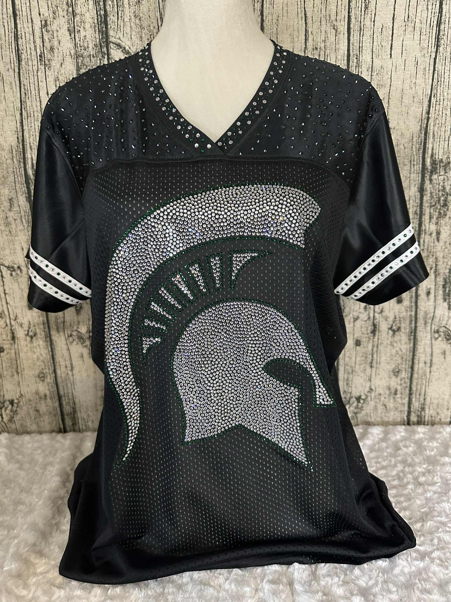 MSU Football Bling Jersey Spartan Helmet Womens Cut