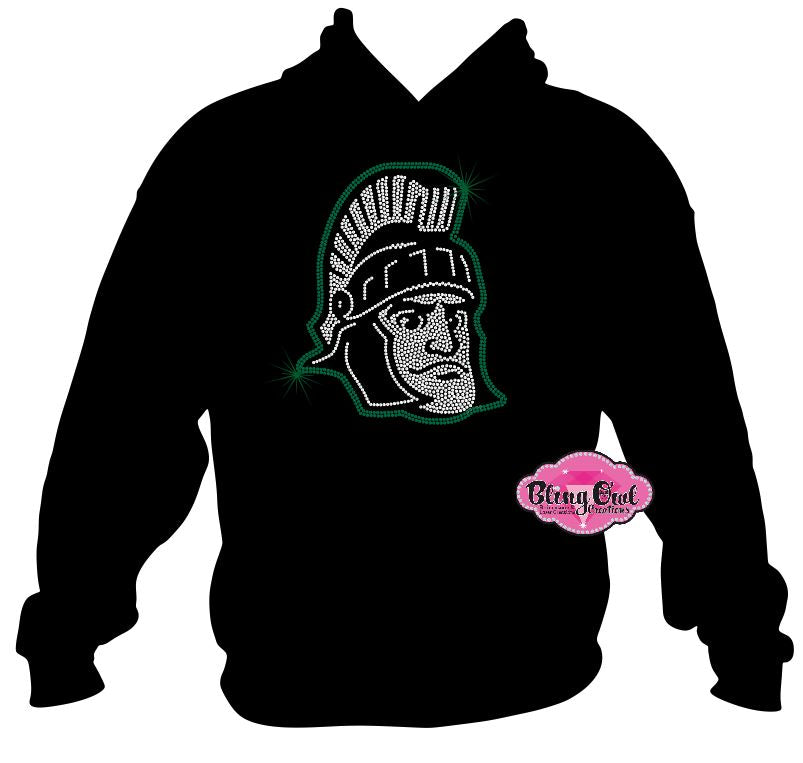 Get ready to turn heads on campus and shine from the stands in this dazzling Michigan State Sparty Rhinestone Hoodie by Bling Owl Creations. This isn’t just a sweatshirt—it’s a handcrafted statement piece designed for true Spartans who bleed green and white and love to sparkle with spirit.