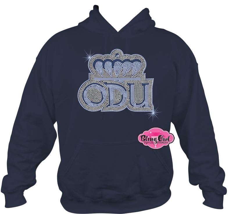 Rep your Monarch pride in style with our ODU Crown Hoodie Sweatshirt, fully decked out in our signature top-quality glass rhinestones. This officially licensed design features the iconic ODU crown logo brought to life in shimmering navy, crystal, and sapphire rhinestones for head-turning sparkle and bold school spirit.