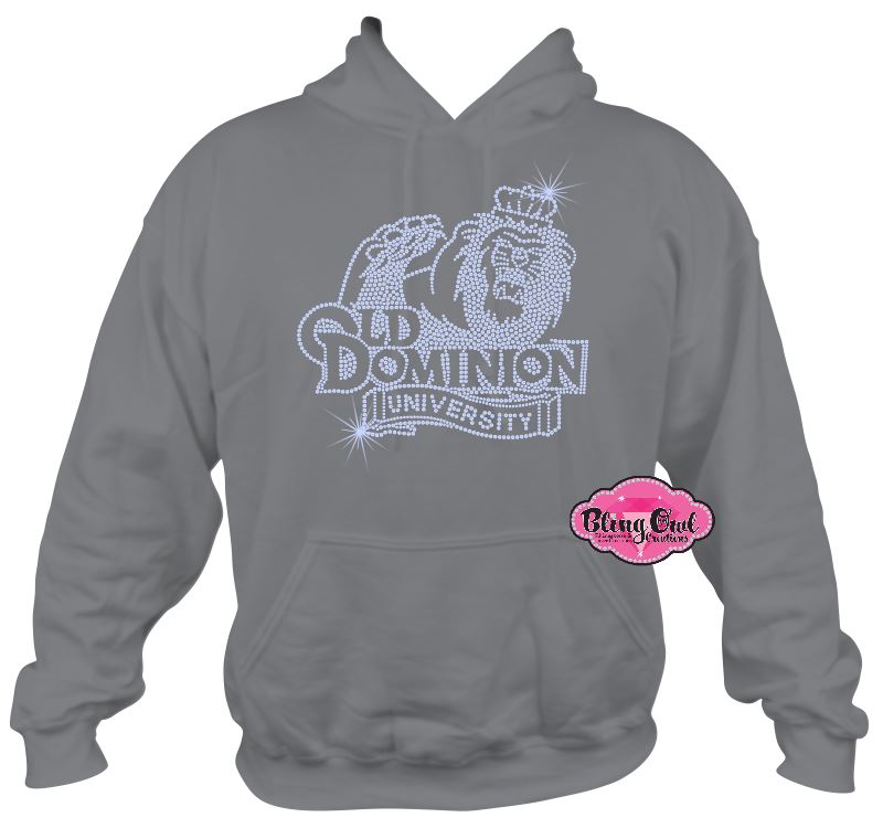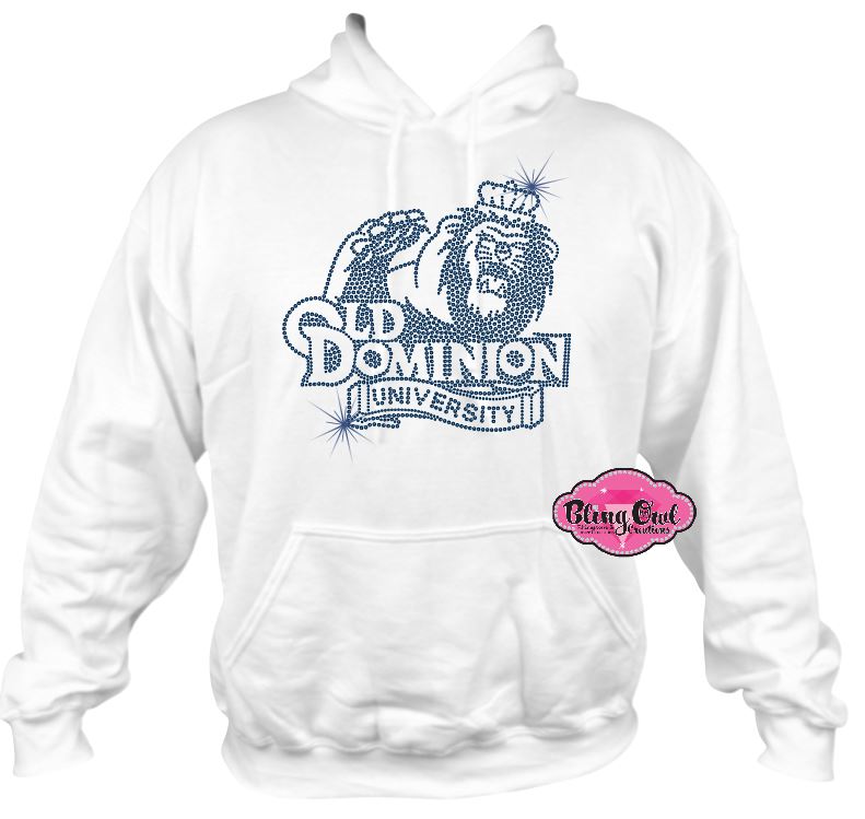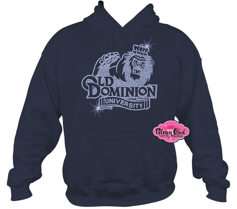 Show your Monarch pride in style with our ODU Lion Bling Hoodie! This eye-catching sweatshirt features the officially licensed Old Dominion University lion head logo, dazzling in top-quality navy and crystal rhinestones for maximum sparkle. Crafted on the classic Gildan heavy blend hoodie, it combines warmth and durability with a relaxed fit perfect for layering.