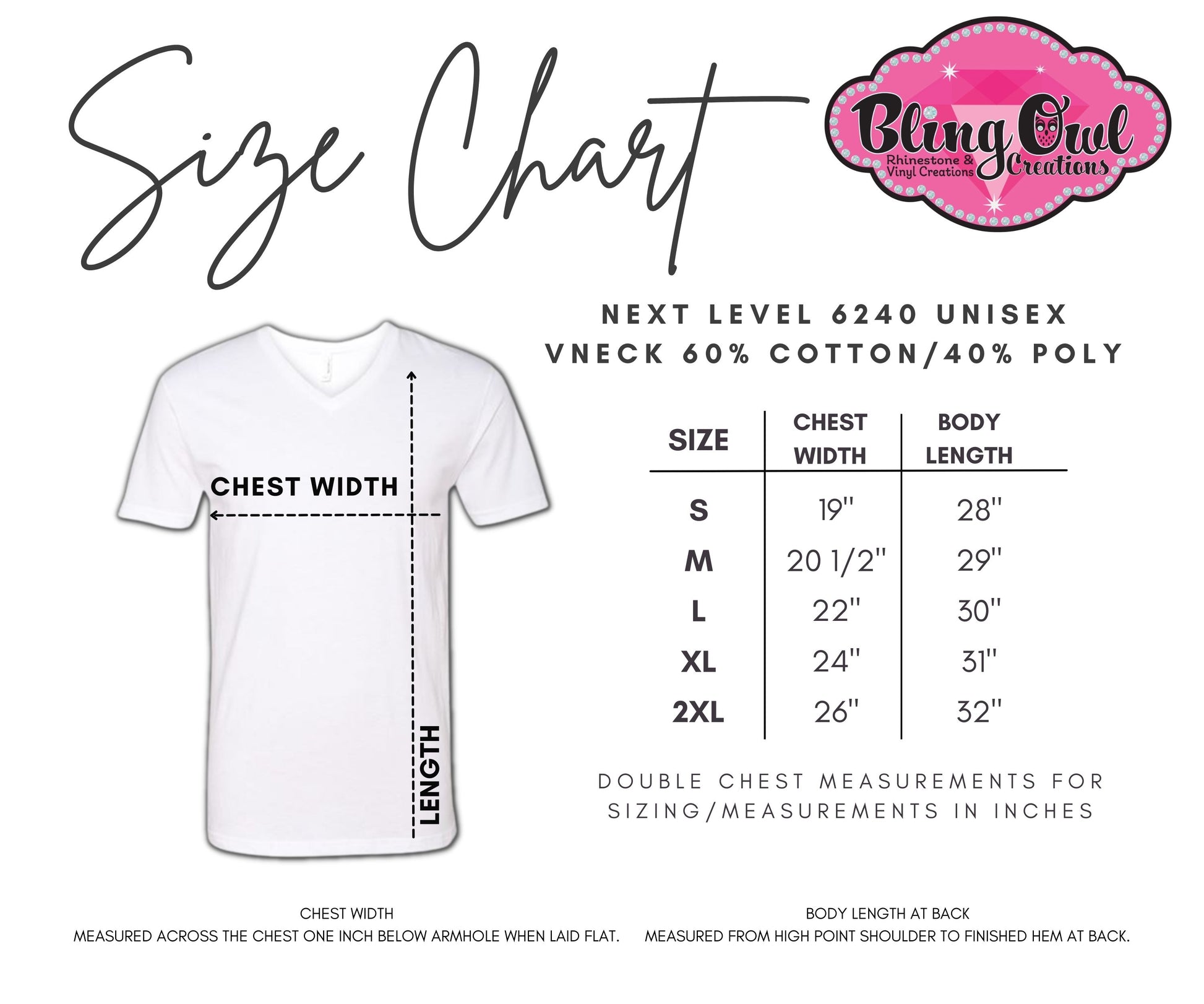 Next Level Unisex Short Sleeve VNeck Sizing Charts (No product/not for sale)