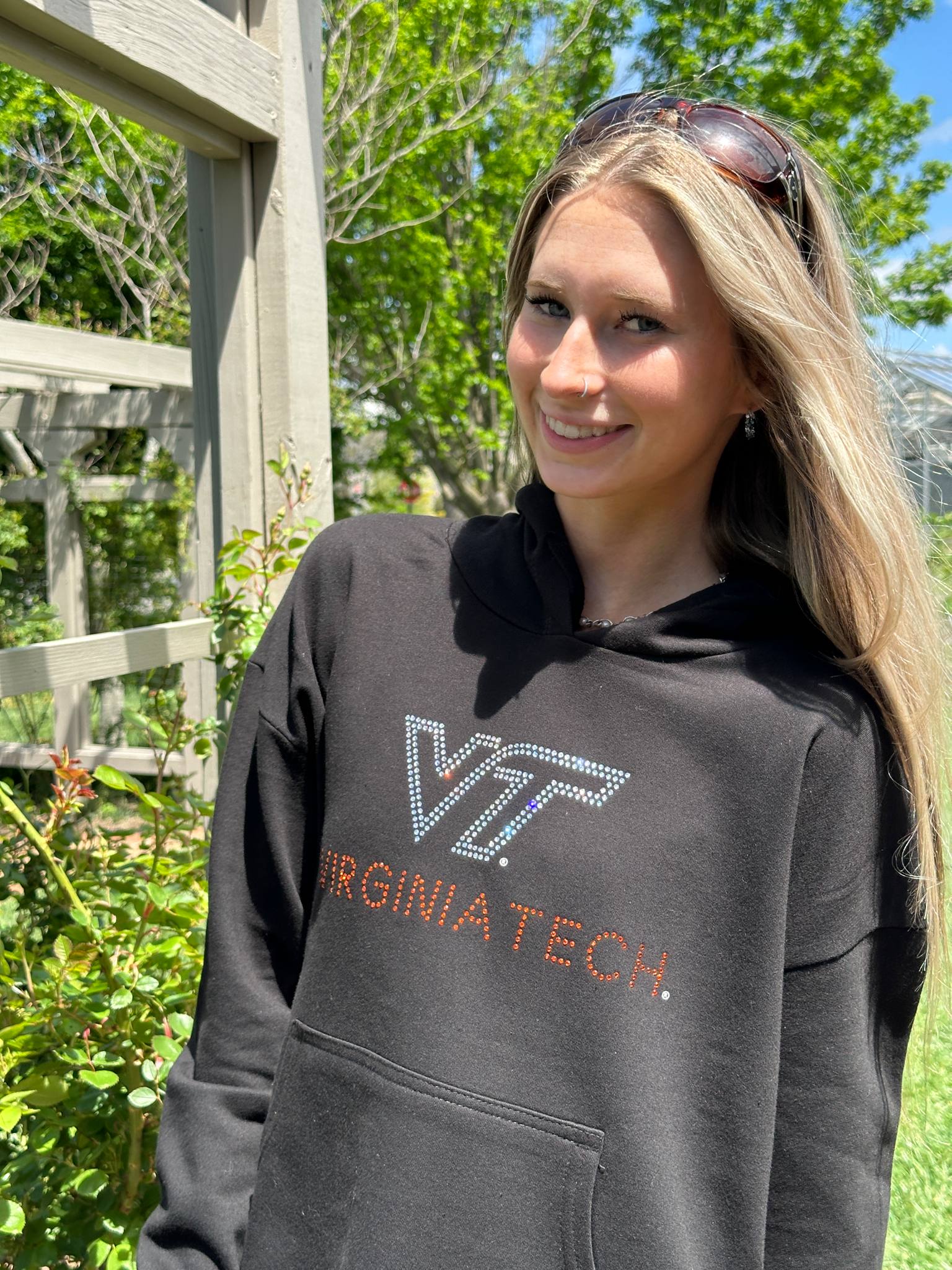 Whether you’re heading to campus, cheering on game day, or meeting friends downtown, this VT cropped hoodie brings Hokie pride and standout style to any outfit. Limited stock—order yours and sparkle for Virginia Tech!
